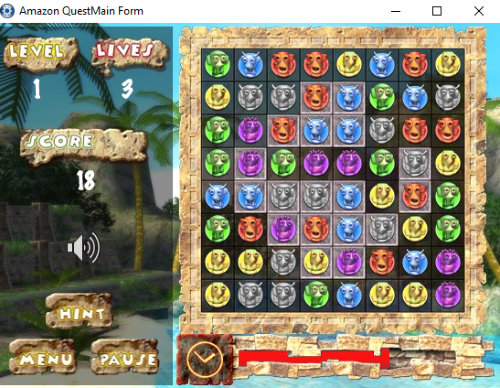 🧠 AmazonQuest is a classic match-3 puzzle game set against the backdrop of a lush Amazon jungle.